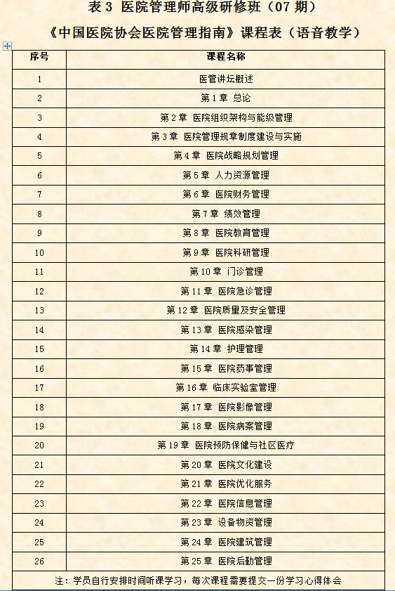 5、职业化能力:通过医院管理理论课、师生间互动研讨重点课、角色模拟演练等形式进行授课,内容包括职业生涯规划、医务角色管理、医务人才成长、职业体验管理、医务时间管理等。