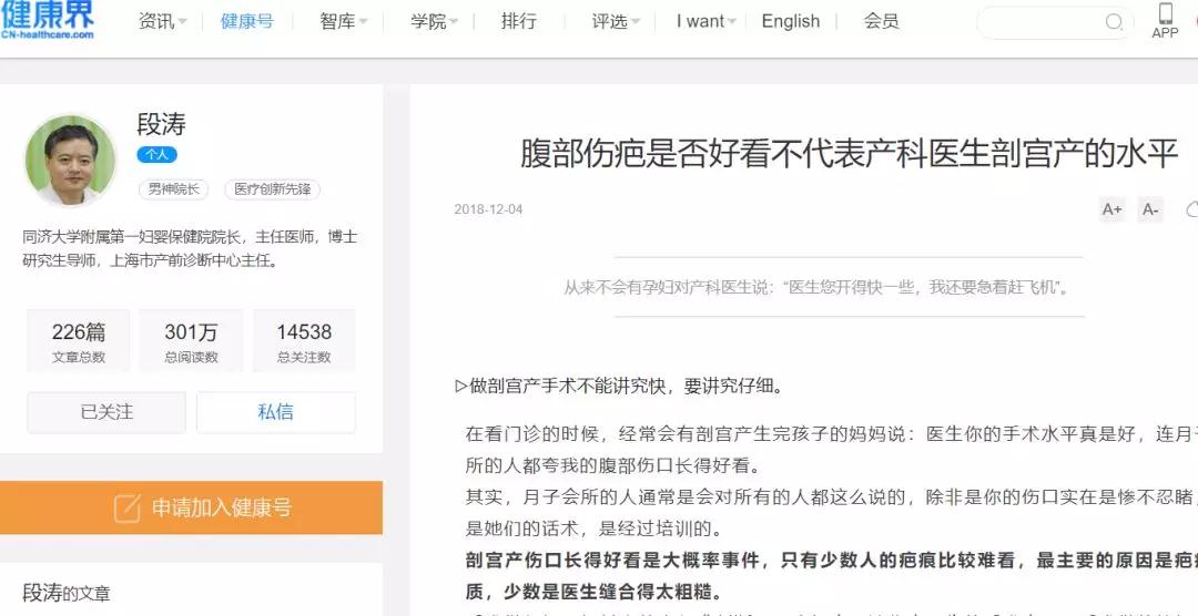 第一篇《腹部伤疤好看不代表产科医生剖宫产的水平》,这篇文章从普及产科手术的角度,写的是非常好的,但也暴露出该医院的职业化管理是有偏颇的,即重视了生物医学质量,而忽视了心理与社会医学质量。笔者就此文在其后的评论栏中写了这么一段话: