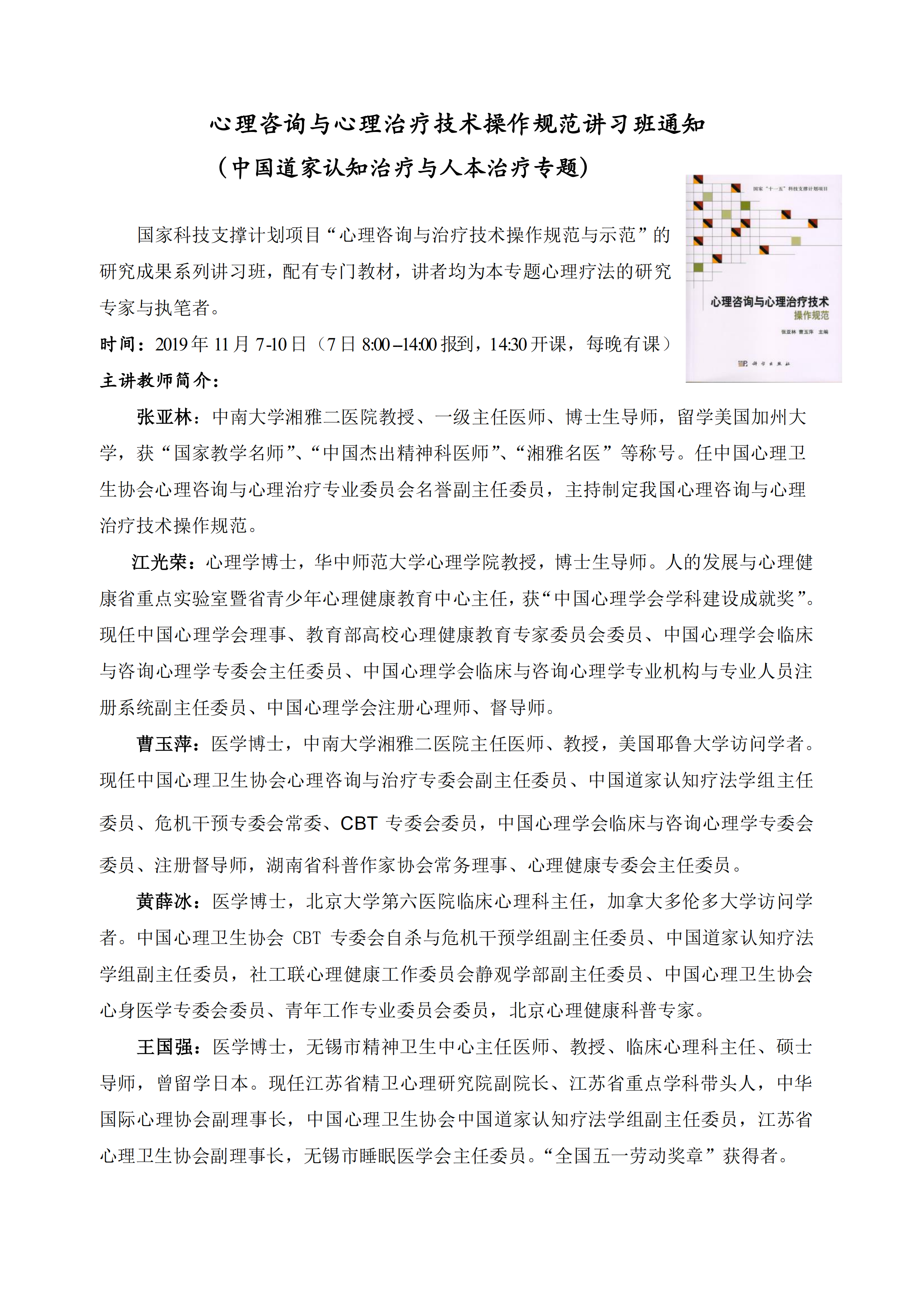 Industry information心理咨询与心理治疗技术操作规范讲习班通知