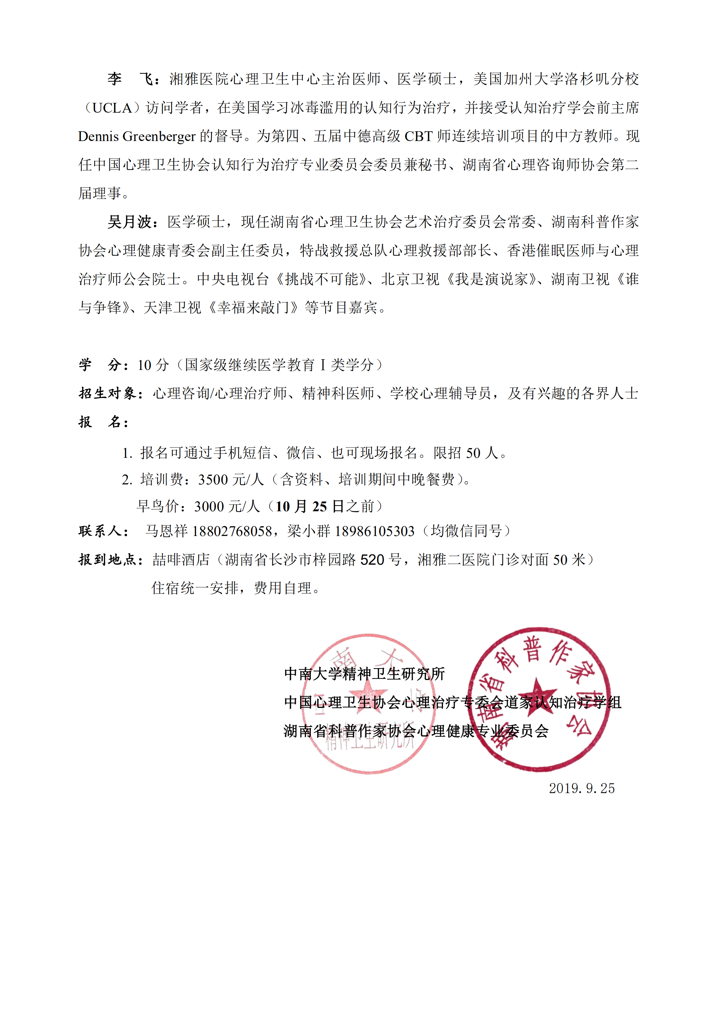 2. 培训费:3500 元/人(含资料、培训期间中晚餐费)。早鸟价:3000 元/人(10 月 25 日之前)
