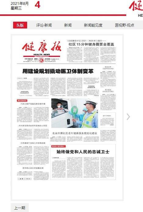 自己是一名《健康报》的长期忠诚读者,也是电子版问世后的忠实订阅者。以前在体制内的时候,都是单位订阅,员工都可以在单位阅览室去看。后来离开体制,做了一名自由职业者,阅读《健康报》没从前方便了,好在电子版及时发行,解决了以移动平台式办公者们对于健康行业报刊的阅读。从前的《健康报》电子版,其结构设计非常适合工作繁忙的人阅读,譬如接连几天没时间读报,等出差回来时,那个跟网络日历一样的界面设置,让人很方便地找到某一天的报纸。如果你想看订阅期内的任何一期报纸,都可以像查网络万年历一样方便。