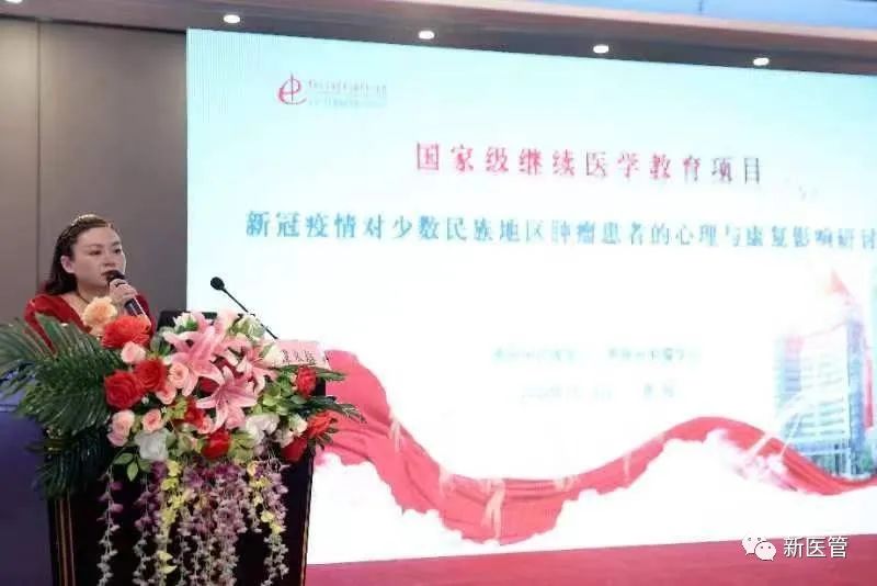 笔者要说的是“新冠疫情对少数民族地区肿瘤患者的心理与康复影响研讨班”,这个研讨班的申请及承办者就是恩施土家族苗族自治州中心医院肿瘤二科护士长谭冬梅副主任护师。她所在的肿瘤二科患者较多,她却能以一科之力,在医院各级领导及护理部的支持下,在认真完成科室护理管理工作的前提下并连续申报并承办国家级继续医学教育项目,吸引了包括肿瘤科及其他科的临床医生参与的肿瘤患者的心理与康复科研创新。全州数十家医疗机构的160名医生、护理管理者及心理护理人员参与了研讨会。作为一个护理管理者,能有如此的心理科研专业及管理组织能力,让人非常钦佩!