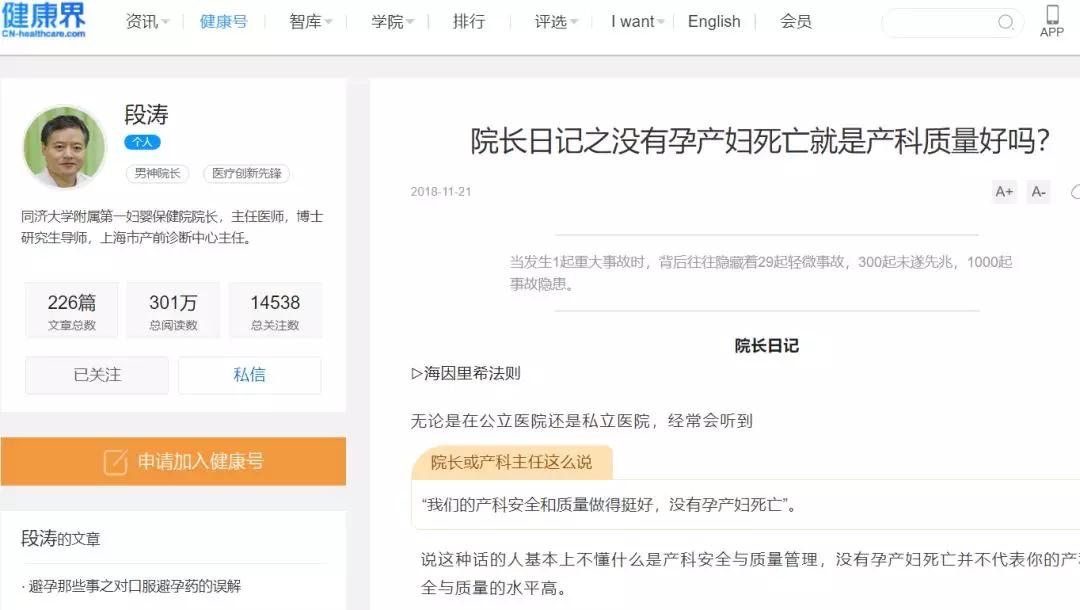 当前国家正在推行从上到下的三级医联体,城市大医院就能有效地指导基层小医院,从产科的质量预防入手,从产前保健做起,这样就能有效地化解产妇死亡的风险。有追求零缺陷管理的精神,就能不断找到改进管理的方法,产科的三级医联体管理机制也许能把小医院的生理产科和大医院的病理产科联结起来,从而化解城市大医院产妇死亡的风险。男神院长的文章还是站在大小医院各自独立的角度来比较产科质量,这种比较的意义看得出城市大医院院长的委屈,在城市大医院死亡的产妇,很多是在基层医院转诊而来的,已经无法避免和消除产妇死亡的风险。但医联体管理得好,就能避免这种风险。零缺陷管理也是能做得到的。